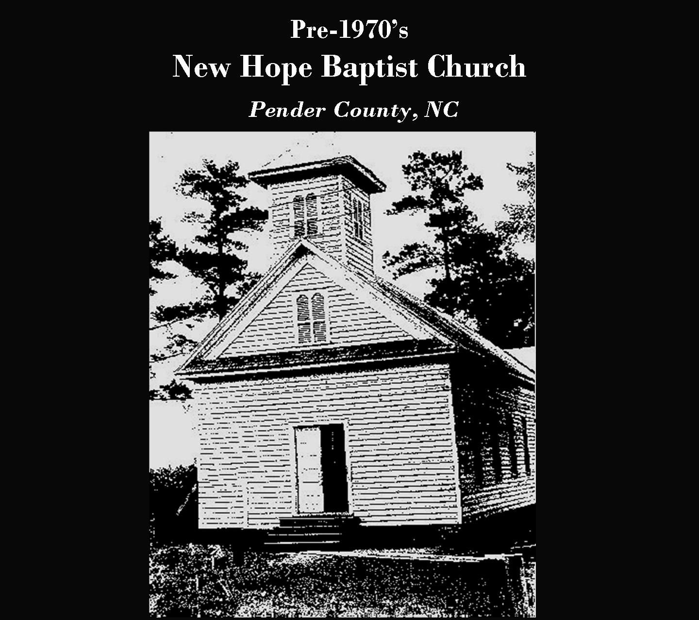 New Hope Missionary Baptist Church, Piney Wood Road, Watha, NC is the original family church of most of the PenderROCK people. It stands on Piney Wood Road, at Rhynes Crossroads, eight miles from Burgaw. New Hope is a member of the Kenansville-Eastern Missionary Baptist Association.